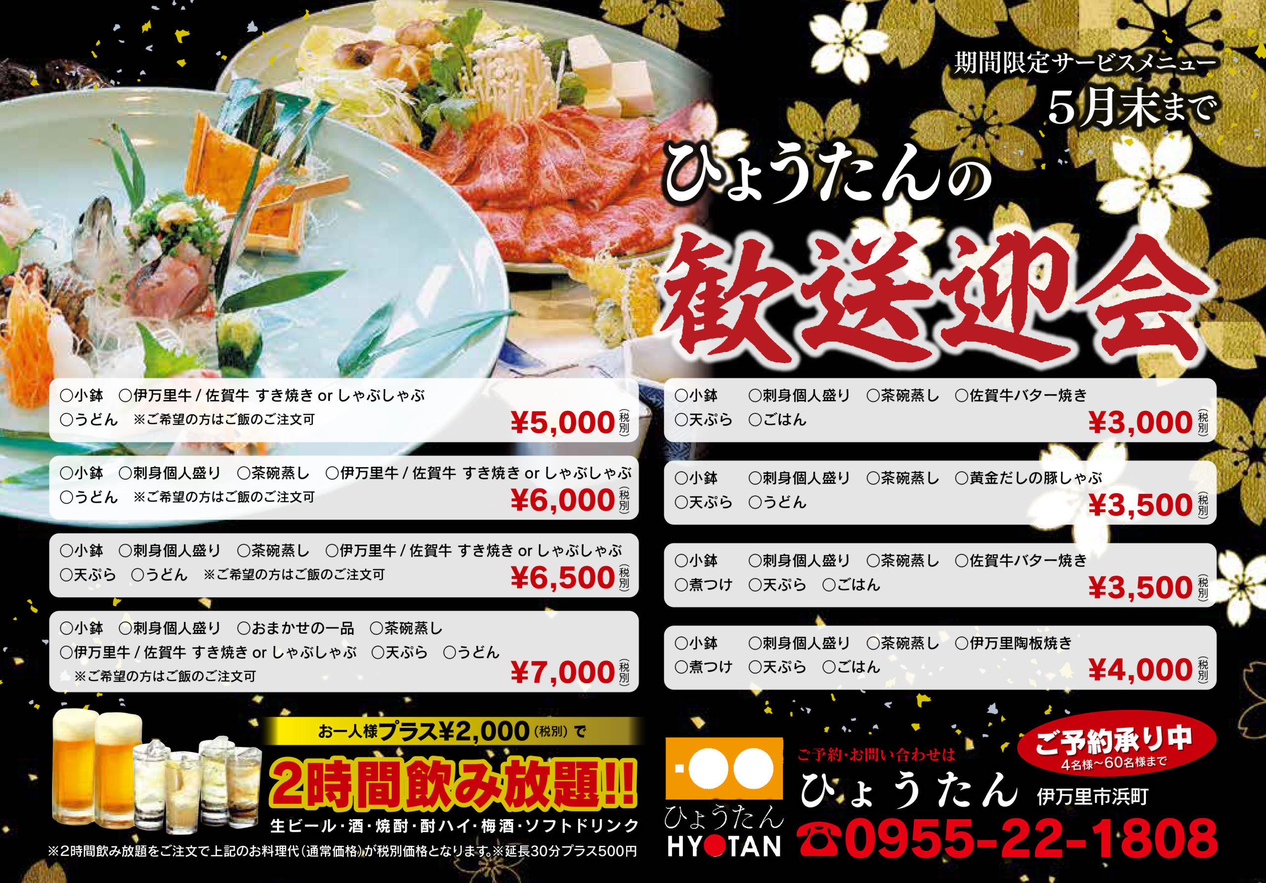 幹事様必見、伊万里の歓送迎会はぜひ、ひょうたんで。