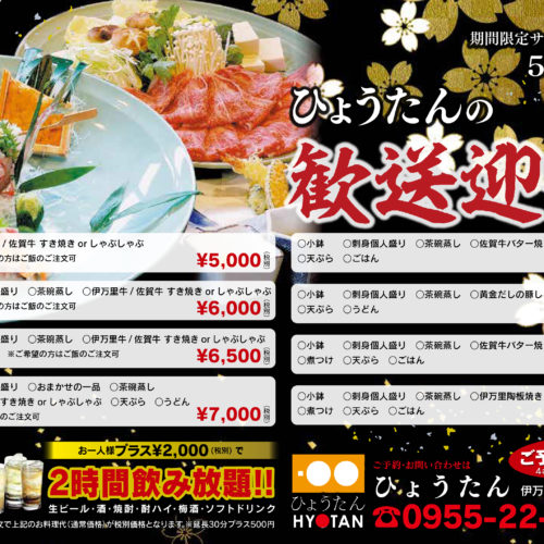 幹事様必見、伊万里の歓送迎会はぜひ、ひょうたんで
